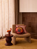 The Wild Pansy Round Cushion in Chocolate is by Bonnie and Neil